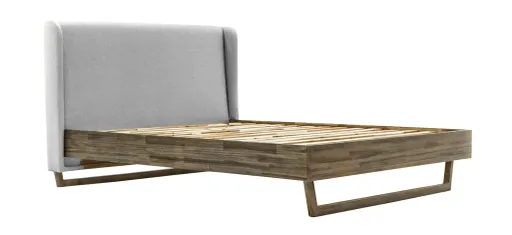 This Aura bed is mid-century modern by design, but not at all limited to any one style. With a fabric headboard, solid acacia frame, and unique outward V shaped base, this piece was made for style and comfort.