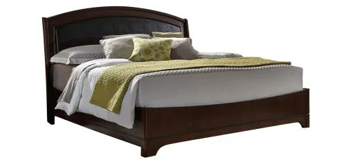 Contemporary elements with clean lines and soft shapes are featured in the Avalon upholstered king panel bed. Shaped fronts and a dark truffle finish give this an edgy, yet comfortable look.