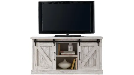 $1,590.00Living Spacescromwell traditional white 79" storage entertainment center with 1 shelf reversible back panelSaveAdd to List