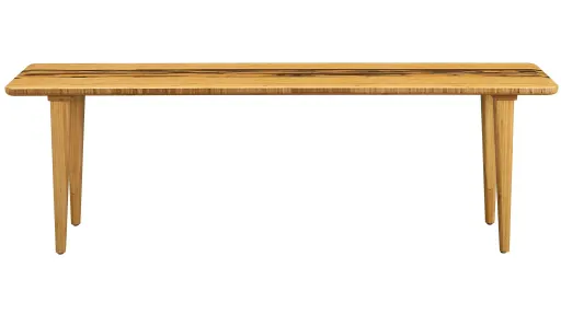 Expertly crafted in earth friendly solid bamboo, the Azara Bench is an elegant design with unlimited uses. Minimal and modern with beveled edges and tapered legs, Azara looks stunning in an entry, dining room, at the foot of your bed, or extra seating for any room. Showcasing a beautiful mix of materials, the bench seat displays a center accent crafted in solid exotic Tiger bamboo. Slight differences in bamboo shade colors are signs that the furniture has been crafted from solid bamboo and is considered a benchmark of quality. Crafted in solid bamboo it is earth friendly, and a sustainable resource.