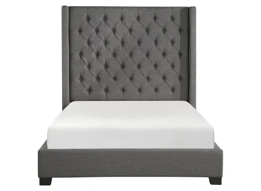 The classic styling of the Aziel California King Size Upholstered Bed presents as a bold centerpiece to your bedroom. Fully upholstered in dark gray fabric, button-tufted, with a shelter headboard design, the elegant profile will be a perfect fit for your modern traditional space.