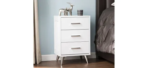 Say good day to great style with this Bampton Nightstand. Retro inspired silhouette frames ample drawer storage, just right for everything from sudoku books to pajama sets. Tall profile fits bedside or next to your favorite living room chair. Upgrade to modern contemporary minimalism with this versatile storage accent table in your bedroom or living area.