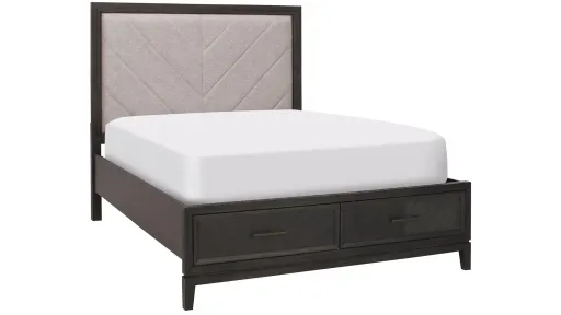 No ordinary bedroom furnishing, the Bari King Storage Bed is stunning and bold, without unnecessary adornment. Its clean-lined geometric wood patterned finish and upholstered panel headboard draw an appreciative eye to its detailed beauty and turn your private sanctuary into a showcase of contemporary style.
