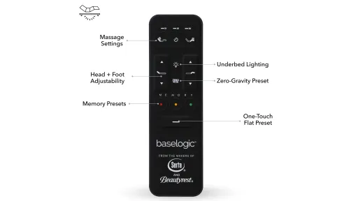 Experience next-level comfort and convenience with the Baselogic Gold Adjustable Base. Designed for customized rest and relaxation, it features head and foot adjustability, a soothing zero-gravity preset, and whisper-quiet massage to help you unwind. A wireless remote, one-touch flat preset, and foldable design make operation and storage effortless. Its zero-clearance profile fits most bed frames, while 3-in-1 adjustable legs offer versatile height options. Enjoy modern lifestyle perks like built-in USB A & C charging ports, underbed lighting, and 3 memory presets to save your perfect positions. Sleep smarter with Baselogic Gold.