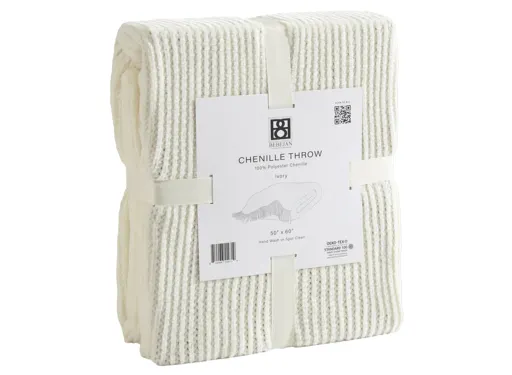 Bebejan Chenille Throw brings ultimate comfort as well as a finished look to the Bebejan Comforter Sets. The three colors, Ivory, Grey and Plum, coordinate beautifully with the lively patterns from Bebejan. It is made from a plush polyester chenille yarn for the coziest warmth and hand feel.