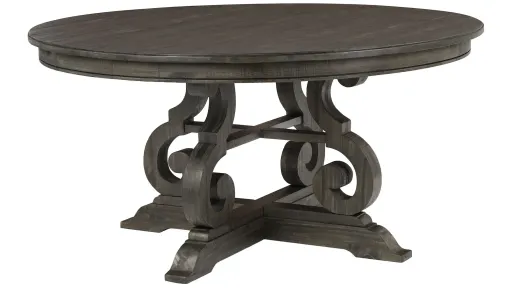Mediterranean influences create an elegantly approachable and a welcoming feeling with the Bellamy dining collection. A rustic finish lends a rich hue to the pine solids and veneers with handsome pewter hardware and accents.