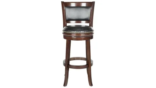 With its pretty low profile backrest, the Berlin Swivel Bar Stool is a comfortable choice for transitional rooms. Upholstered with black PU leather with bronze nailhead trim, this luxe bar stool is crafted of eco friendly hardwood in cappuccino finish.