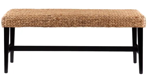 Weave a living room seating wonder with this Berwick Black And Water Hyacinth Bench. Woven water hyacinth seat steadies your guests or your cocktail tray in front of the sofa, while the I-frame creates a clean, minimalist look. Come home to a sleeker take on coastal style with this bench in the entry, in front of your vanity in the dressing area, or centering your living room seating arrangements.