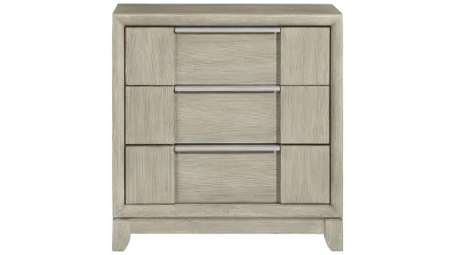 The sophisticated modern styling of the Birman Nightstand brings refined design to the elegant space of your bedroom. The nighstand features ash veneer, which features a light gray finish that perfectly complements the horizontally mounted, pewter-finished, metal hardware that centers each of the unit's drawers.