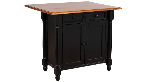 Enhance the beauty and warmth of your kitchen while extending your work surface, dining and storage space with this finely hand crafted Black Cherry Selections kitchen island with drop leaf top. This versatile piece is perfect for preparing family meals or serving drinks and appetizers when entertaining guests. Alone or paired with coordinating bar stools, this classic drop leaf island will be sure to complement your kitchen decor and provide a welcome gathering place for your family and friends for years to come!