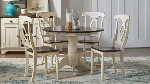 The British Isles 5-pc. napoleon drop-leaf dining set is constructed of solid Rubberwood and designed with traditional country appeal.