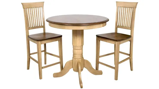 Warm tones with unique distressed details ignite the look of the Brook 3-pc. bar-height dining set. Coordinating pieces make this collection a stylish and versatile choice.