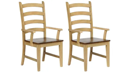 Sunset Trading's Brook Ladder Back Arm Chairs provide French country charm to your dining space with a classic ladder-back design. You will find many ladder back chairs, your search for the ideal dining chair set will bring you to this Collection, which boasts side chairs and ladder back chairs with arms that match perfectly. Though ladder-back chairs are traditional in nature, these dining chairs are suitable for many decor styles, including Rustic, Mission/Shaker and Transitional. Coordinating Brook Collection Buffet Server, Sideboard and Kitchen Cart make this chair set a stylish and versatile choice.