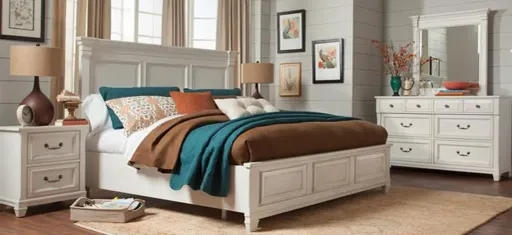 Freshened up with clean architectural elements and the cotton white finish which features a gray wash over white, Brookfield queen panel bed lures with its updated coastal and cottage feel. Framed inset panels on the bed is outlined by traditional squared columns which are capped with shaped tapered tops for clean detailed interest. This smart styling is reflected in the headboard and footboard. The bed creates an easy retreat.