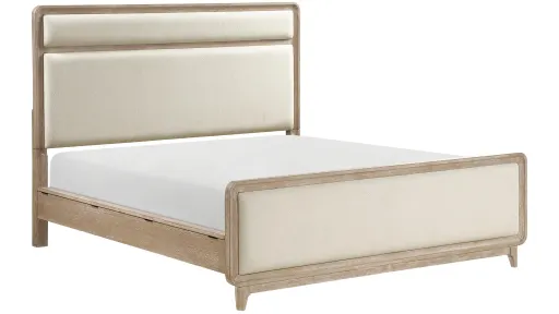 This elegantly designed Broome Bed offers a serene and sophisticated centerpiece for your master bedroom, blending rustic charm with contemporary comfort. Crafted from a combination of durable oak veneer, solid wood, and engineered wood, this bed frame ensures exceptional stability and longevity. The natural finish highlights the beautiful wood grain, while the plush chenille fabric upholstery on both the headboard and footboard provides a soft, inviting touch. This complete set includes a stylish upholstered headboard, a complementary footboard, and sturdy rails, creating a cohesive and luxurious foundation for your sleep sanctuary.
