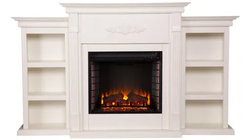 Turn up the heat on style with the Bruton Fireplace. Classic woodwork flourishes across the mantel and pilasters, lining up a traditional fireplace look. Optional bookcases shelve your reading lists, decor, and family photos, while the mantel houses floral arrangements and your memento collection. Glowing faux fire logs add ambiance with flickering LED flames and lifelike embers, with or without heat. This smart fireplace warms your hearth, from the living room to the home office.