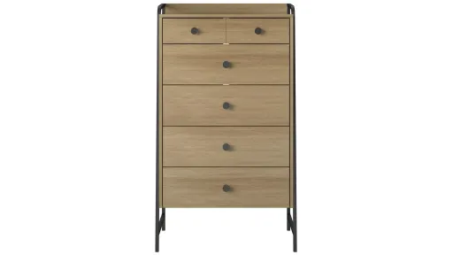Give your bedroom a fresh makeover with the Bushwick Tall 5 Drawer Dresser by Novogratz. This rustic Tall 5 Drawer Dresser is comprised of engineered wood with a natural wood grain finish atop an industrial style power coated metal frame. The top drawer is conveniently sized for smaller items, while the roomy lower 4 drawers give enough space to stow away an abundance of clothing, freeing up much needed closet space. Assembly required.