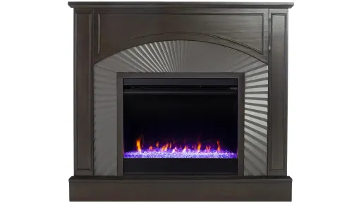 Infuse warmth and comfort into your home with this freesttanding Buxton Fireplace. Crown molding and classic woodwork craft a traditional look, while the grooved silver surround adds texture and contrast to your space. Shimmering faux crystal adds ambiance with flickering LED flames, alternating colors, and lifelike embers, working with or without heat all from the convenience of your sofa. Create a cozy space to gather with this elegant electric fireplace in your living room or open concept living space. Do not place TV on Mantel.