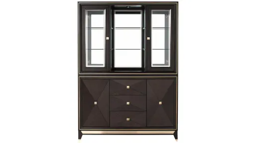 The Callister 2-pc. china cabinet with lighting accomplishes a sleek, contemporary look while managing to remain timeless. Its chocolate finish presents itself beautifully in any space. Touch lighting in the hutch lets you display your favorite dishware or decor in a stunning presentation. Plus, a felt-lined top drawer provides safe storage for your more delicate items.