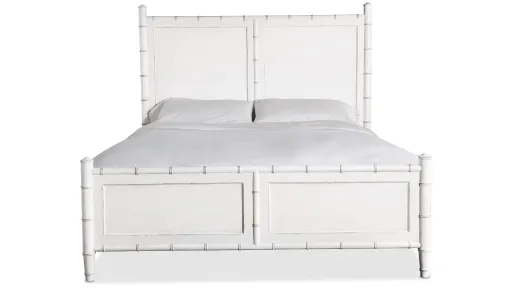 Charleston Panel Bed is an oasis of renewal for your bedroom space. The headboard and footboard have bamboo-motif trim and bamboo posts on the ends. The wood headboard, footboard and side rails are finished in White Heron, a softer interpretation of the classic Southern limestone white with a slightly brighter sheen, delivering an heirloom-quality finish. Headboard can be used alone.