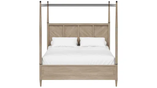 Introducing the Citrus Heights Canopy Bed, an exquisite fusion of timeless elegance and modern allure. Crafted with meticulous attention to detail, this bed epitomizes sophistication with its clean straight lines and transitional casual lifestyle design. Constructed from high-quality Mindi veneer, each piece is carefully wire brushed to enhance the natural grain, resulting in a stunning texture that exudes warmth and character. The Sand finish adds a touch of subtle sophistication, creating a harmonious balance between contemporary flair and classic charm. The canopy design of this bed offers a sense of grandeur and opulence, while still maintaining an air of understated refinement. Whether nestled in a cozy bedroom retreat or as the focal point of a master suite, the Citrus Heights Canopy Bed effortlessly elevates any space with its timeless appeal. Indulge in luxury and comfort as you retreat to this sanctuary of style and tranquility. Elevate your bedroom décor with the Citrus Heights Canopy Bed and experience the epitome of modern sophistication and relaxed refinement.