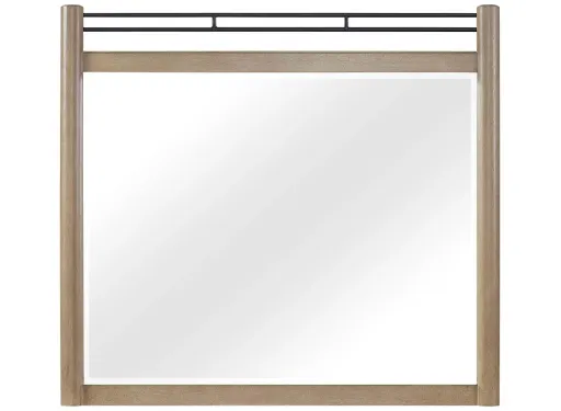 Elevate your bedroom decor with the timeless charm of the Citrus Heights Poster Dresser Mirror. Crafted with meticulous attention to detail, this mirror seamlessly combines rustic elegance with modern sophistication. Constructed with sturdy mindi veneers, this mirror boasts exceptional durability and longevity. The sand finish, enhanced with a wire-brushed texture, adds depth and character to the piece, while showcasing the natural beauty of the wood grain. Metal accents adorn the frame, providing a striking contrast and adding a touch of industrial flair. Whether placed atop a dresser or mounted on the wall, this mirror effortlessly enhances any space with its understated yet distinctive style. Reflecting both light and beauty, the Citrus Heights Poster Dresser Mirror is not just a functional accessory, but a statement piece that brings warmth and refinement to your home.