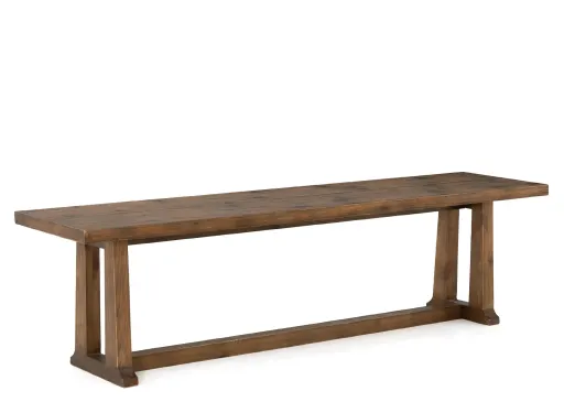 Bring a traditional sense to the dining room with Collins 71" Dining Bench. Finished in a warm honey hue, a trestle-style base of solid pine supports a bench seating of pine, waxed and bleached for a rustic look with natural depth.