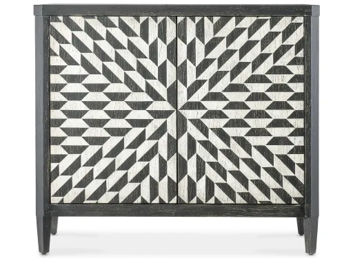 The Commerce & Market Lancaster Hall Chest offers the classic and always-stylish black & white combination and timeless painted starburst pattern on the door fronts. Crafted of Maple Veneers, the two doors have soft-close hinges and magnetic door catches with one adjustable shelf behind the doors.