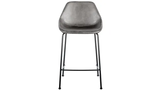 The Corinna counter stool set of two combines a rich, distressed leatherette seat and back with a contemporary silhouette. This stylish and versatile stool has baseball stitching accents on the seat and a strong and flexible base is made of solid round matte black steel.