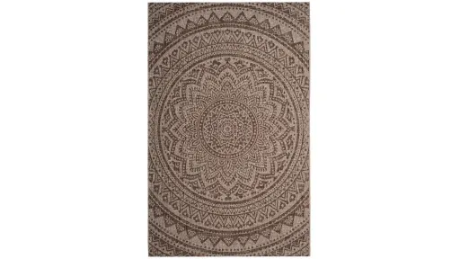 The Courtyard Mandala Indoor/Outdoor Area Rug brings interior design style to busy living spaces, inside and out. Courtyard is beautifully styled with patterns from classic to contemporary, all in colors, shapes, and sizes to fit any area. Courtyard area rugs are made with enhanced polypropylene in a special sisal weave that achieves intricate designs that are easy to maintain - simply clean with a garden hose.