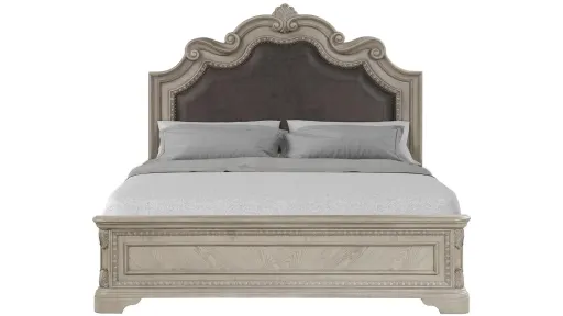 Coventry Panel Queen Bed is a magnificent piece that exudes the grandeur and elegance of periods past. Its detailed carvings and expertly tailored faux leather headboard are highlighted in a warm gray finish, creating a fresh spin on a familiar centuries-old design. Crafted with meticulous attention to detail, this bed boasts a sturdy construction that ensures durability and longevity. The headboard is generously padded, providing a comfortable backrest for those late-night reading sessions. The faux leather upholstery is soft to the touch and easy to maintain, adding a touch of sophistication and luxury to any bedroom. The Coventry Upholstered Panel Bed's intricate carvings are a testament to the skill of its craftsmen. Each element has been carefully designed and executed to create a cohesive and visually stunning piece. From the gracefully curved legs to the ornate floral motifs, every detail is a work of art. This bed is a statement piece that will transform any bedroom into a luxurious and inviting retreat. Its classic design and warm gray finish make it a versatile addition to any d_cor, while its high-quality materials and expert craftsmanship ensure that it will stand the test of time. Invest in the Coventry Upholstered Panel Bed, and enjoy the comfort and style of a bygone era in your own home.