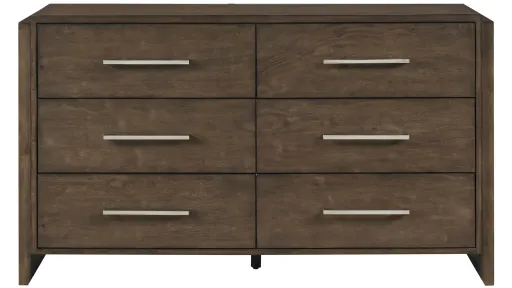 This sophisticated Devlin Dresser offers abundant storage and timeless style, making it an essential addition to any bedroom. Expertly crafted from a blend of solid rubberwood and durable plywood, this dresser promises exceptional stability and longevity. The rich, dark walnut finish exudes a warm and inviting aesthetic, effortlessly complementing a wide range of interior decors from classic to contemporary. Featuring six spacious drawers, each constructed with sturdy dovetail joints and smooth ball-bearing glides, organizing your clothing and accessories has never been easier or more efficient. The sleek polished chrome-tone bar pulls provide a modern contrast, elevating the overall design of this truly functional and elegant piece.
