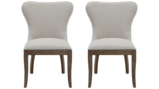 With its woven fabric upholstery embellished with bronze nailheads and the driftwood legs, the Dorsey Dining Chair: Set of 2 will fit right into any transitional or contemporary setting. Set a modern farmhouse tone in your dining area with the Dorsey Side Chair.