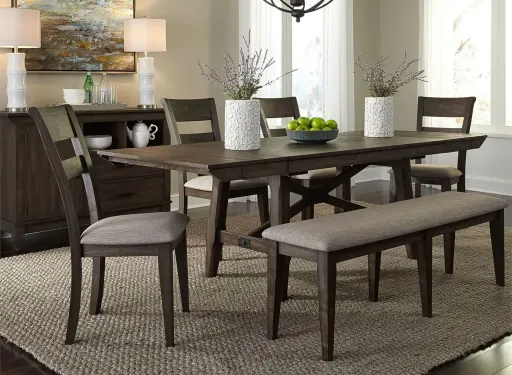 $799.00Bob's Discount Furniturehomeworks 6 piece dark brown & gray upholstered counter height dining set with storage benchSaveAdd to List