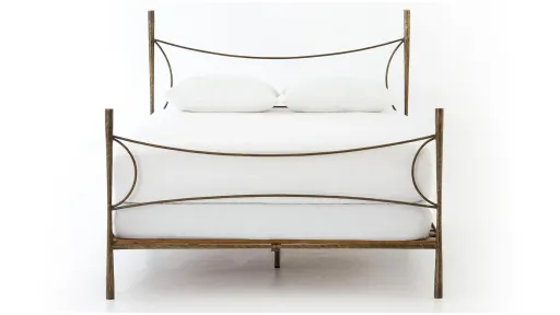 The beguiling curves of the Element King Bed soften hard materials for marked drama. Slim, hammered iron is finished in antique brass for depth that defies this frame's feminine air. A sculptural-focused design inspired by Swiss artist Alberto Giacometti.