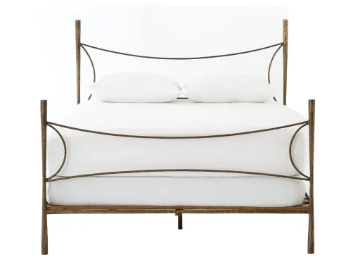 The beguiling curves of the Element Queen Bed soften hard materials for marked drama. Slim, hammered iron is finished in antique brass for depth that defies this frame's feminine air. A sculptural-focused design inspired by Swiss artist Alberto Giacometti.