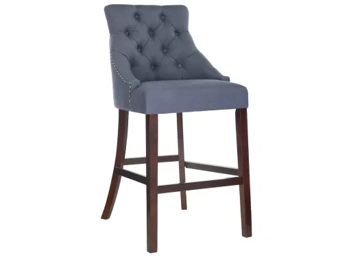 A refined blend of gentle curves and elegant details, this Eleni Wingback Bar Stool transforms any meal into a fine dining experience. Crafted with tufted navy linen and a polished chrome nail head detail, it brings sophisticated style to any dining area.