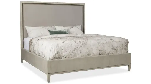 Create a serene refuge in your bedroom with the Elixir King Upholstered Bed that exudes a feeling of comfort and simplicity. The headboard is upholstered in a soft, neutral texture, with the border, footboard and rails finished in a gray-beige finish applied to lightly sand-blasted walnut veneer for an organic and textural look. Bed includes headboard, footboard and rails.