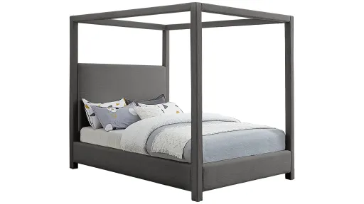 Get plenty of Z's when you sleep in this Emerson Bed. This canopy bed is fit for a king, with four posts providing a luxurious frame for your mattress. Its mid-century modern design and rich linen textured fabric gives the bedframe a cozy feel, making it a wonderful addition to any sleeping space. With its unique blend of wood, linen textured, and foam construction, this bed is both sturdy and large enough to fit royalty.