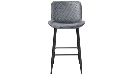 Emmeline Pub Height Chair is serving as the perfect complement to your modern casual dining space, the Emmeline Collection pairs with your existing counter or bar tabletop. The available 29-inch height chair features a seat which is covered in dark gray velvet fabric upholstery and is supported by black metal legs. The diamond stitch pattern of the seat further lends to the modern aesthetic of the piece.