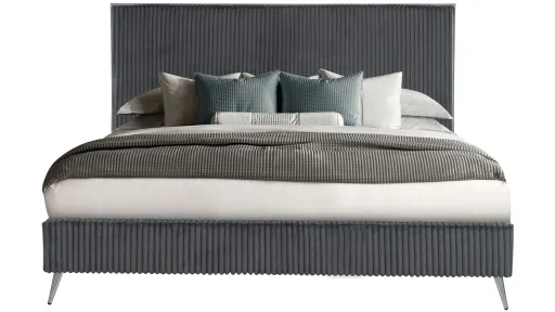 Presenting the Enzo Bed, a sleek and modern design crafted with exceptional attention to detail. This bed showcases a rich dark grey finish and an upholstered headboard. There is an upholstered drawer on every case piece all sold seperately, providing the piece with a touch of style. As a result of coordinating case pieces, the Enzo Collection seamlessly blends functionality and style in a way that makes it a perfect addition to any distinguished bedroom environment.