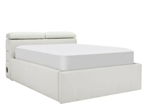 The expertly designed Essex full platform storage bed will never disappoint you. You can't go wrong with the upholstered headboard, footboard and side rails. Plus, this bed has it all when it comes to tech: 2 LED swing lights, bluetooth speakers, 5 outlets, 2 USB ports, and 2 adjustable headrests with 6 positions. Relax in style with your favorite tech right by your side with this amazing bed.