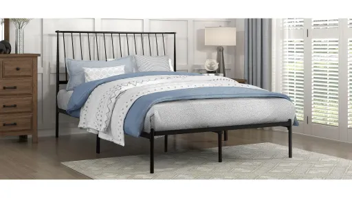 Fawn Metal Platform Bed is the design inspiration that creates the transitional look of the Fawn Collection. Whether interpreted as Mid-Century Modern, Farmhouse, Modern or Transitional, the unfettered lines of the Eastern King bed lend to a perfect pairing in many decorative environments. The subtle angle of the headboard intersects with the low-profile platform, their lines serving as accent to your soft good d_cor.