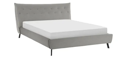 The knife edge profile of the Floresville California king upholstery bed cuts a modern look for your bedroom's dcor. The concave curve of the low-profile bed's headboard is accented with button tufting and a grey fabric cover. Black metal legs provide support to the bed while offering subtle complementing contrast to the overall design of the piece.