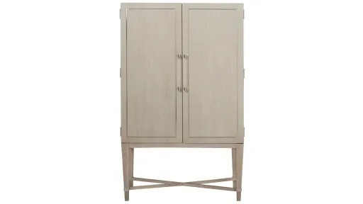 A good bar cabinet elevates any dining room. The Francesca bar cabinet is an entertainer's dream, with a drawer, a pullout tray, and adjustable glass shelves to house an entire collection of glassware and spirits. Touch lighting, along with clear acrylic and nickel hardware accents add subtle elegance.