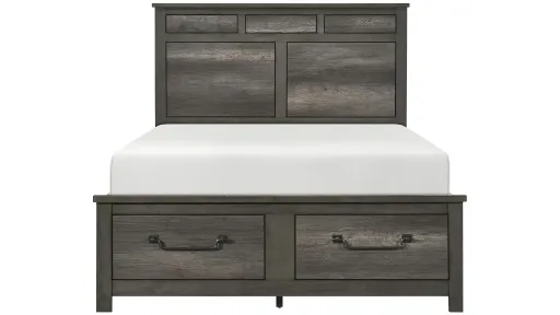 Subtle design characteristics lend hints of rustic, industrial and transitional aesthetics to the classic look of the Gabe Platform Bed w/ Storage. The gray finish of the melamine laminate's faux wood lends durability to the rustic finish of the bed.