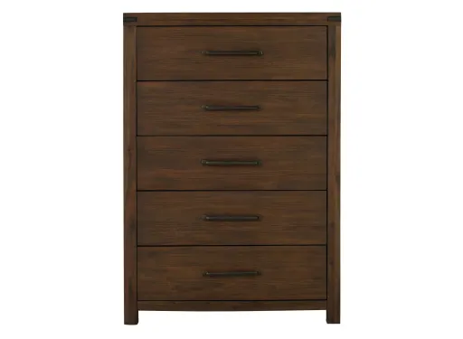 The Gannon bedroom chest pulls off a look that's subtle yet stunning. This piece's clean lines lend a contemporary vibe, and its warm wood finish is versatile enough to work with any design scheme. Wire brush texture adds depth, and pewter-finished handles reveal 5 drawers. No need to worry about where to put extra clothes and blankets.