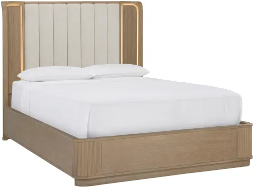 Inspired by the sleek glamour of Art Deco design, the Gatsby Bed brings cool texture and dimension to your room. The shelter-framed headboard with upholstered channel tufting is complemented by rounded corners, reeding details and a natural matte finish for an effortlessly chic vibe. Adjustable, touch-controlled LED lighting dials up the ambience.