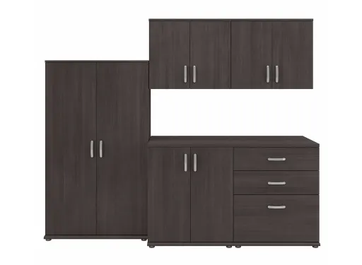 The Bush Business Furniture Genesis 5-pc. Storage Set features a commercial quality design that's built to last and provides ample room for organization. Both the Laundry Storage Cabinet with Doors and Tall Linen Cabinet combine fixed and adjustable shelving to accommodate items of various sizes. The two Wall Mounted Cabinets also contain one fixed and one adjustable shelf each for flexible, space-saving storage. This commercial-grade modular storage cabinet set has been meticulously tested to meet or exceed ANSI/BIFMA standards for safety and performance and is backed by a 10 Year Warranty.