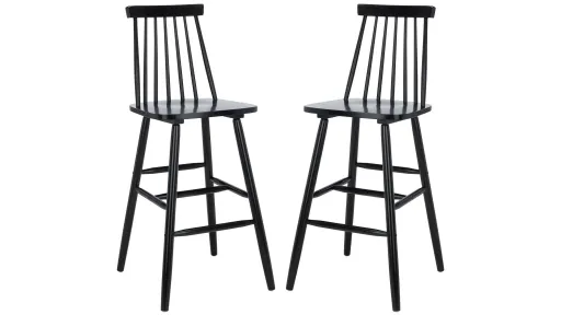 Raise a glass at the home bar while resting comfortably atop the dcor smart, clean line style of the Giles Bar Stool. With soft curves and an open air spindle back crafted of hardwood in a deep black finish, it blends seamlessly with any dcor.